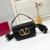 Valentino Garavani Alltime Woven Leather Shoulder Bag Black 22Cm