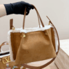 Valentino Garavani medium-sized suede shopping bag with floral embroidery lining, featuring a metallic VLogo Signature. The shoulder strap features two iconic maxi studs at the ends.