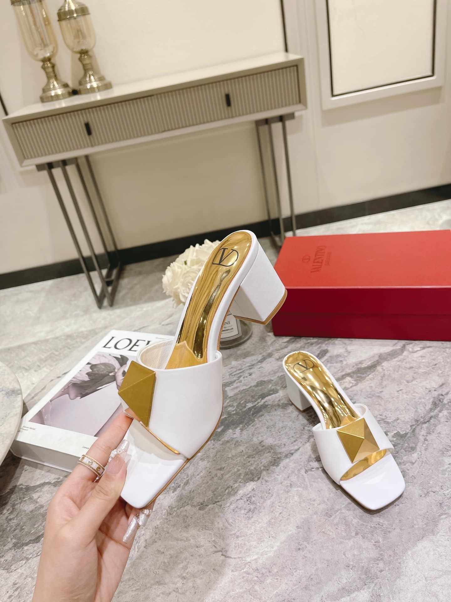 - Metallic leather lining with Vlogo detail.