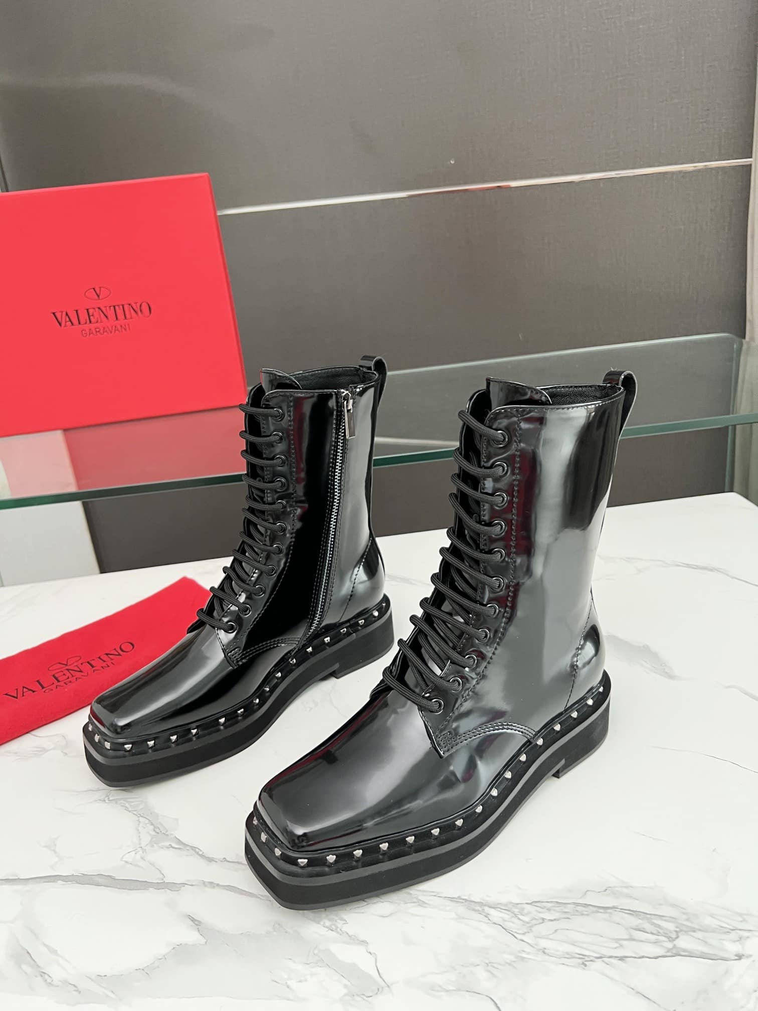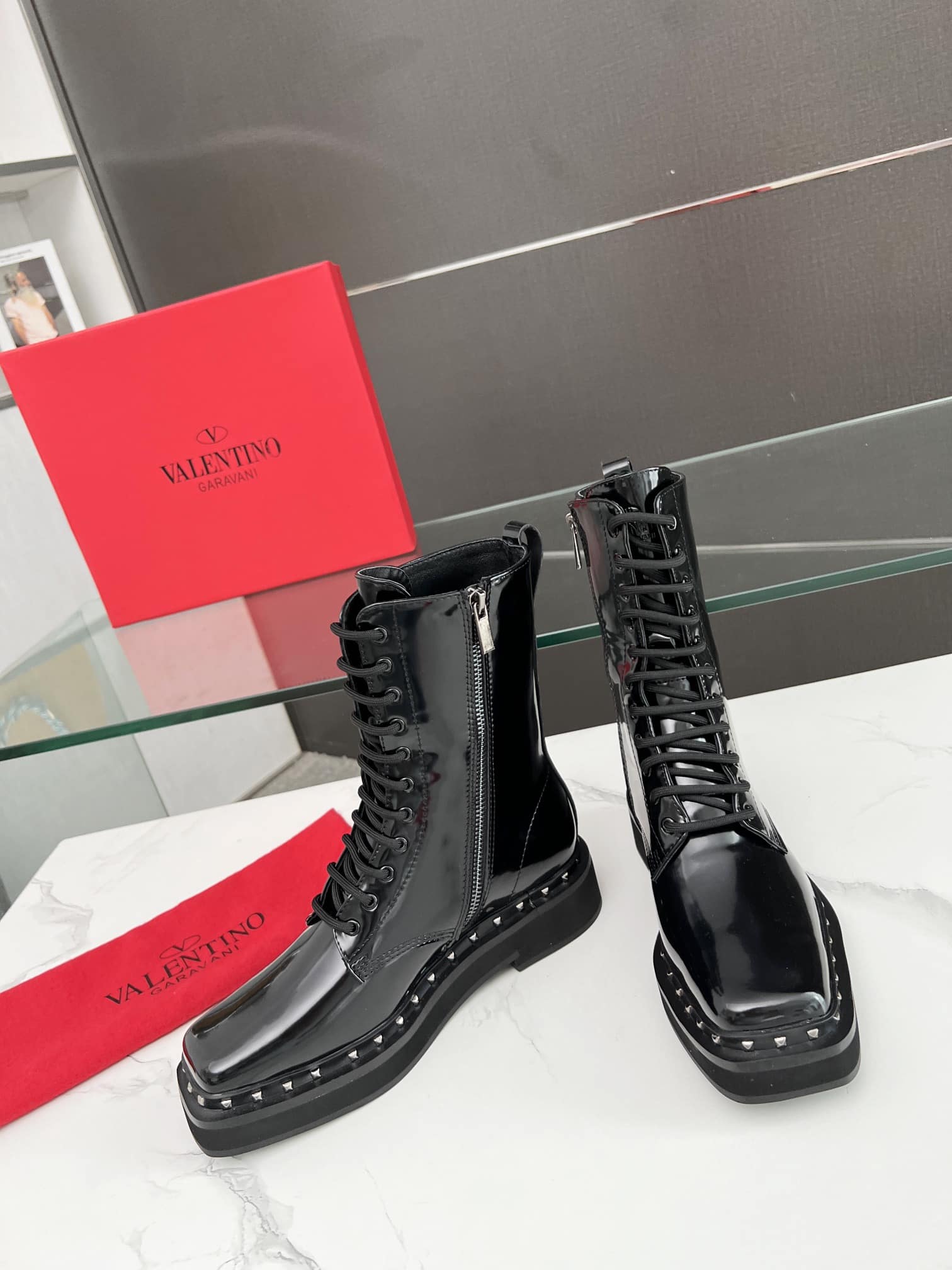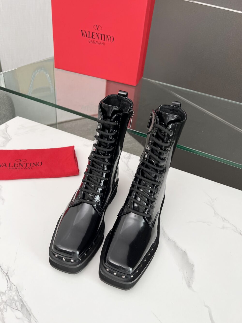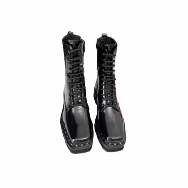 VALENTINO GARAVANI ROCKSTUD ANKLE BOOT SQUARE TOE BLACK
