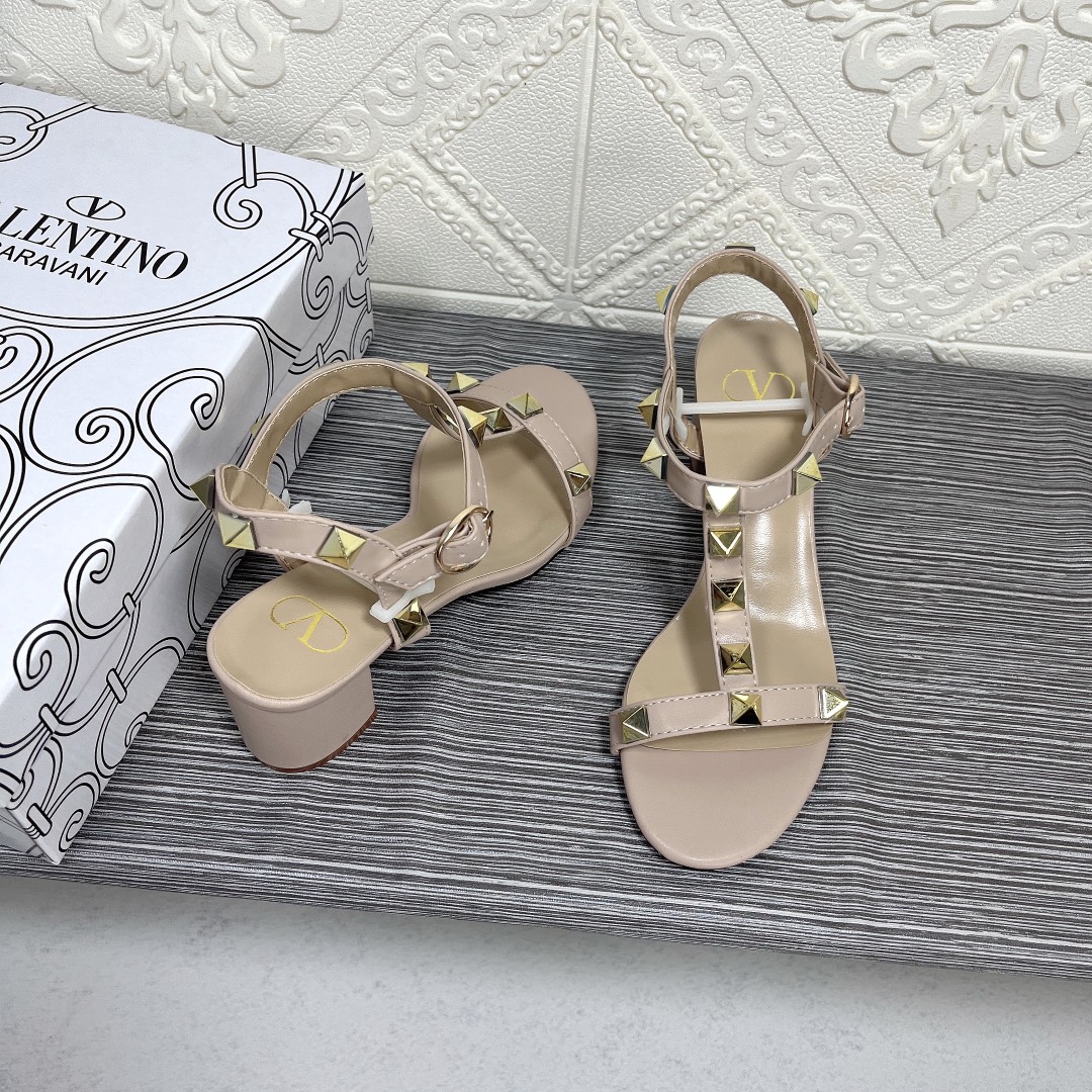 VALENTINO GARAVANI ROCKSTUD CALFSKIN LEATHER SANDAL BEIGE