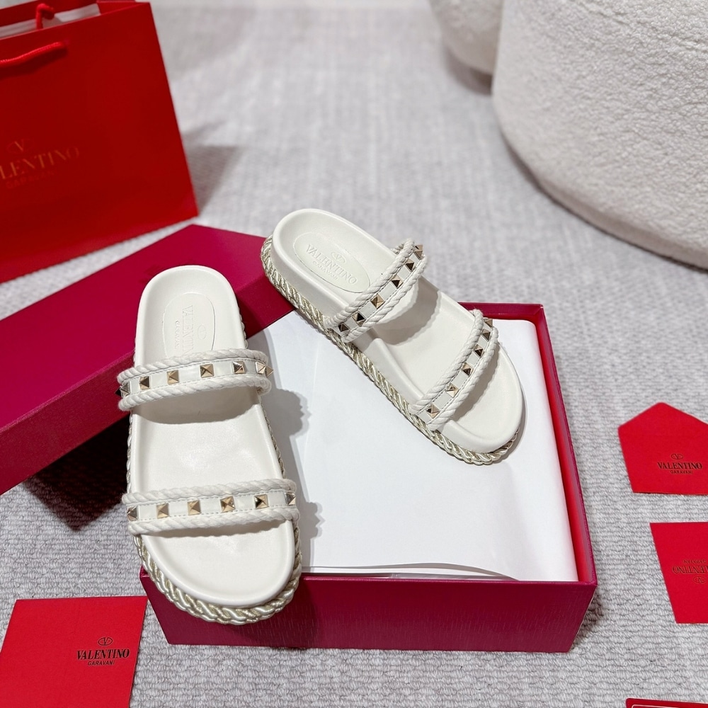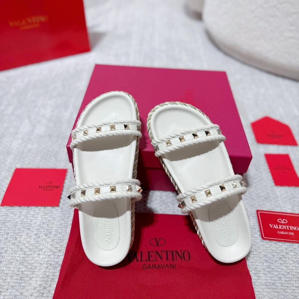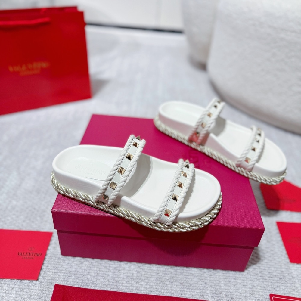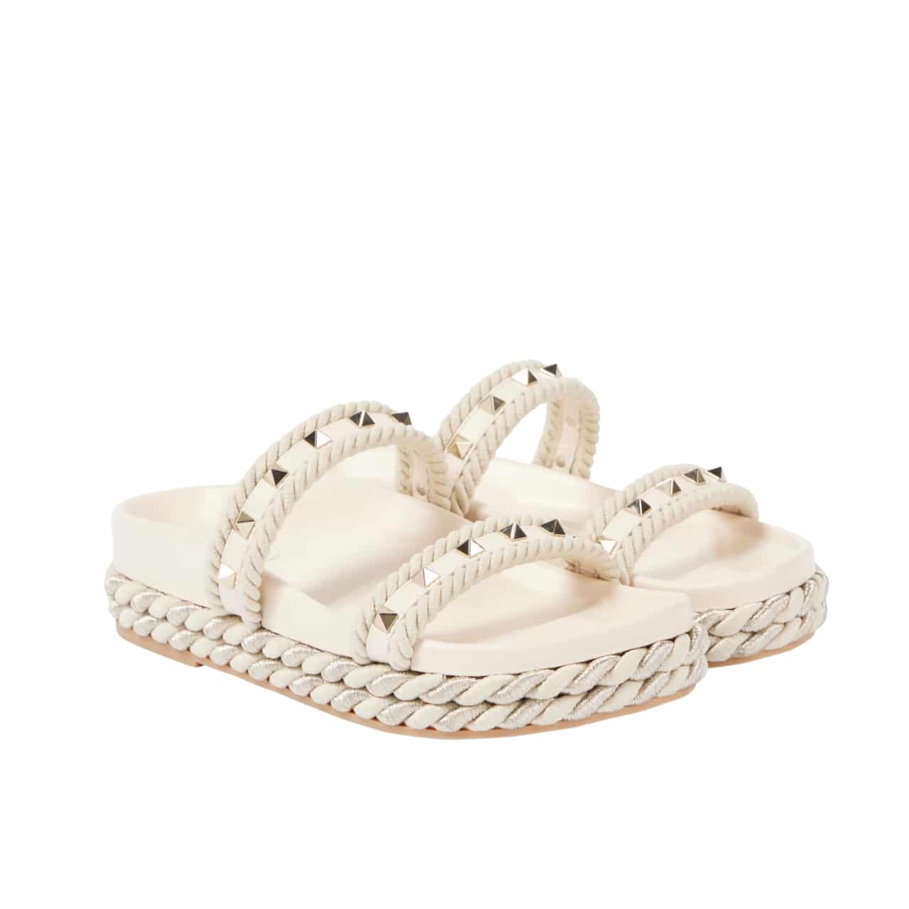 VALENTINO GARAVANI ROCKSTUD LEATHER ESPADRILLE SLIDE IN WHITE