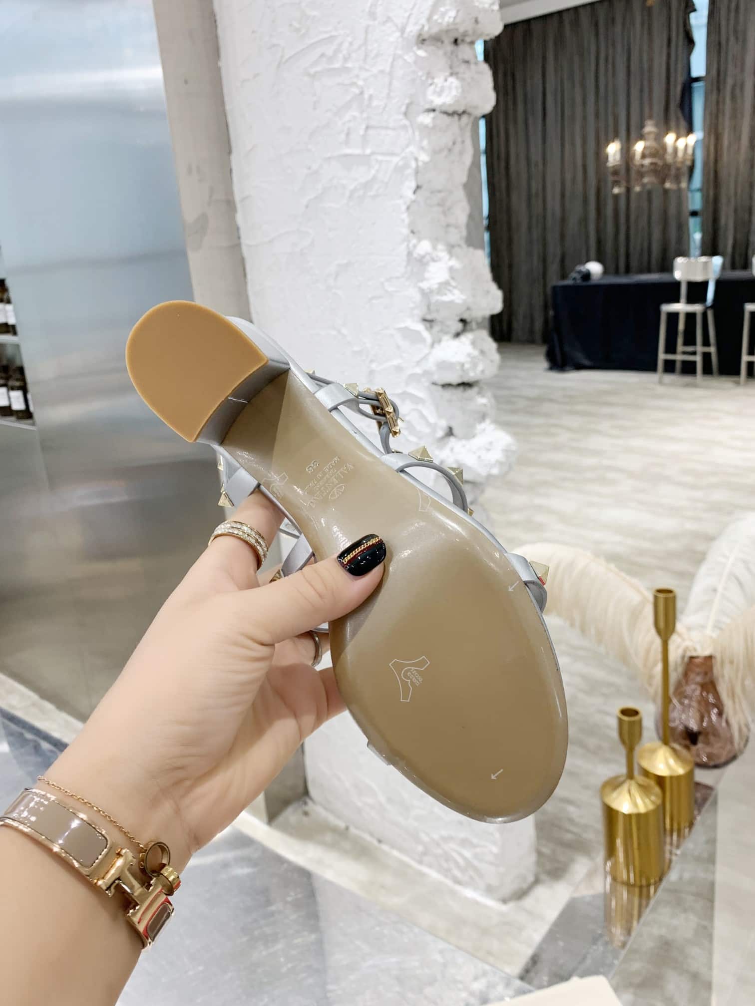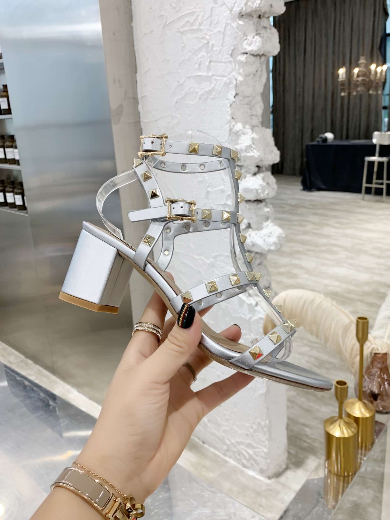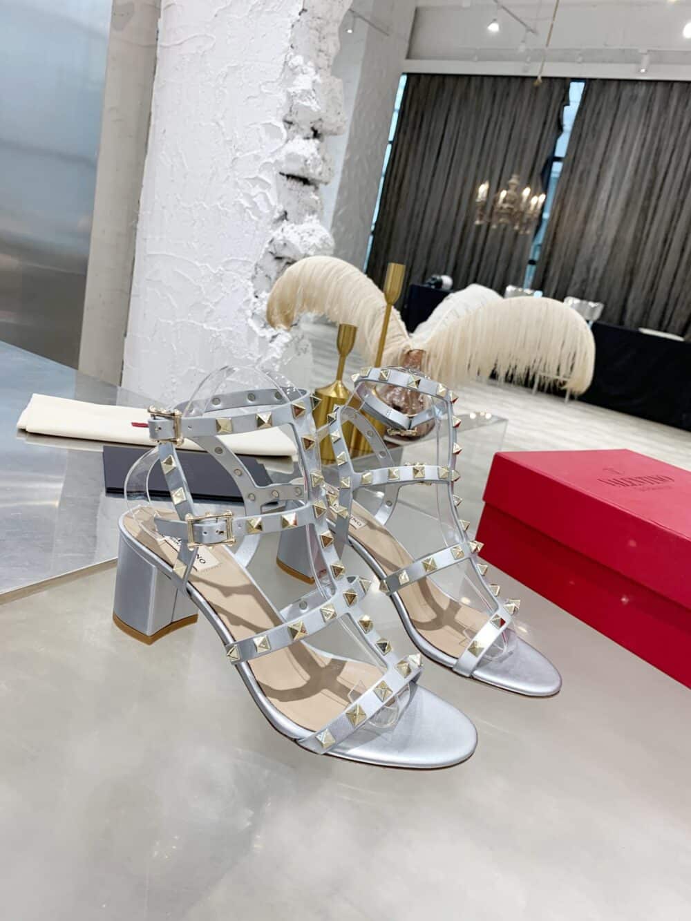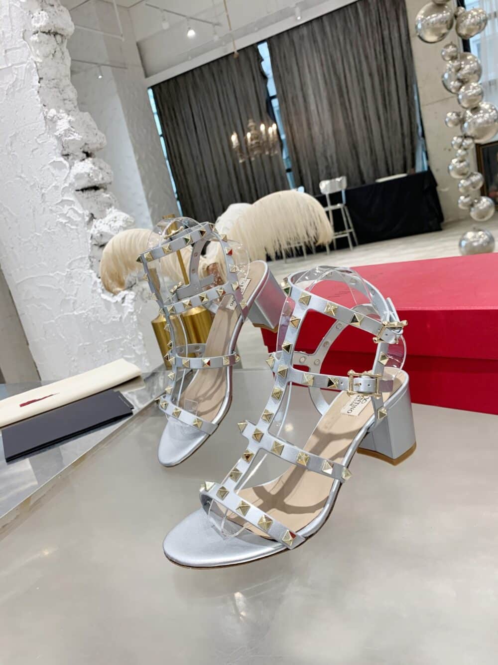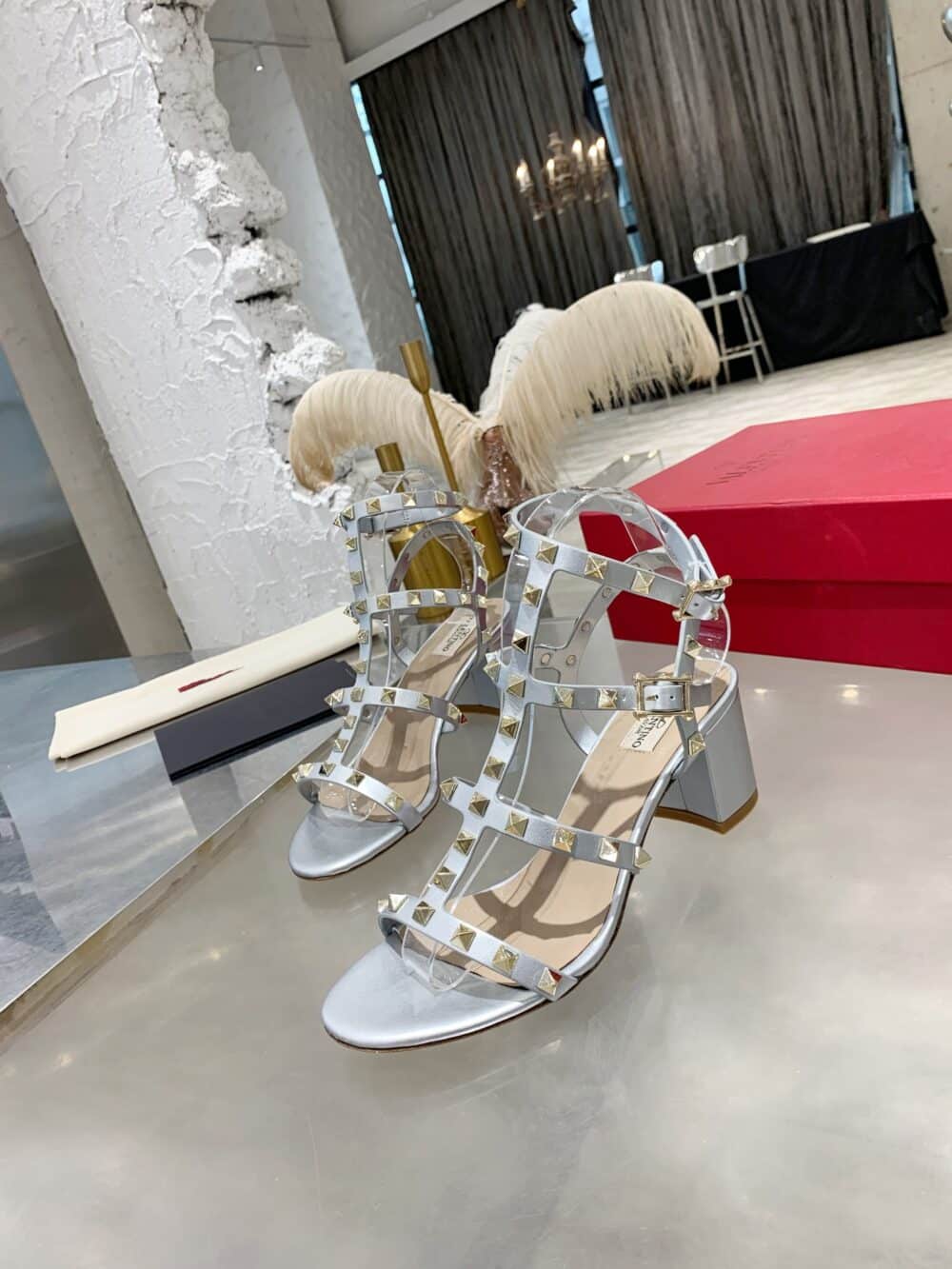 VALENTINO GARAVANI ROCKSTUD LEATHER SANDALS SILVER