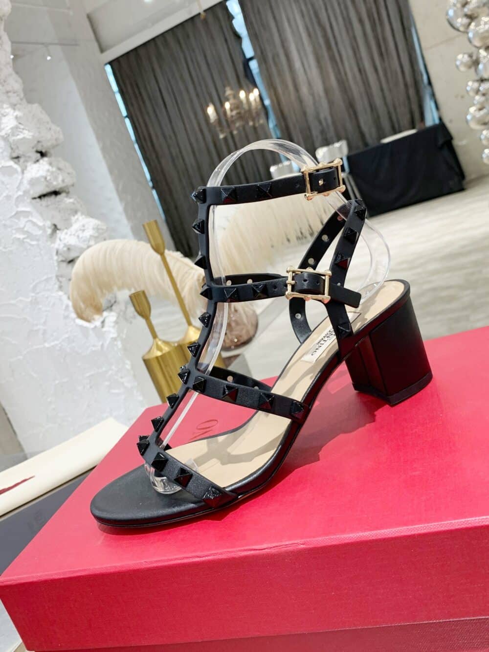 VALENTINO GARAVANI ROCKSTUD LEATHER SANDALS BLACK