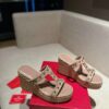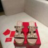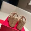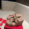 Valentino Garavani Rockstud Leather Wedge Sandals Beige