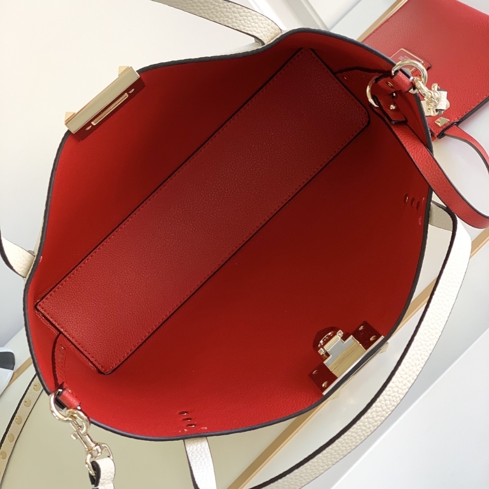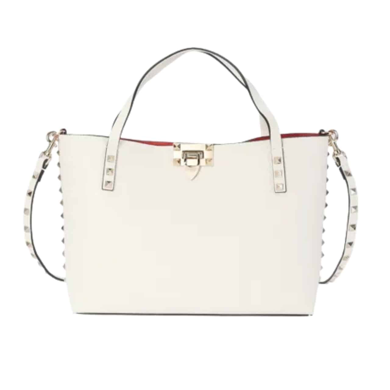 Valentino Garavani Rockstud Small Tote Bag White 28cm