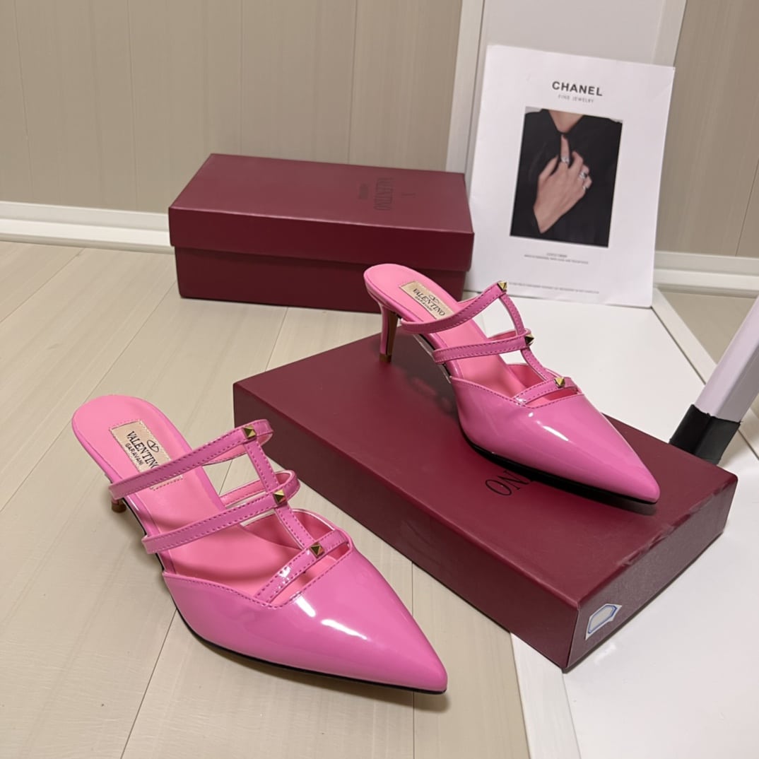 VALENTINO GARAVANI ROCKSTUD WISPY MULE IN CALFSKIN MAGENTA