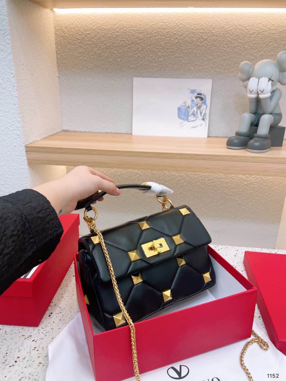 Valentino / Garavani Roman Stud Chain-Link Shoulder Bag / Black