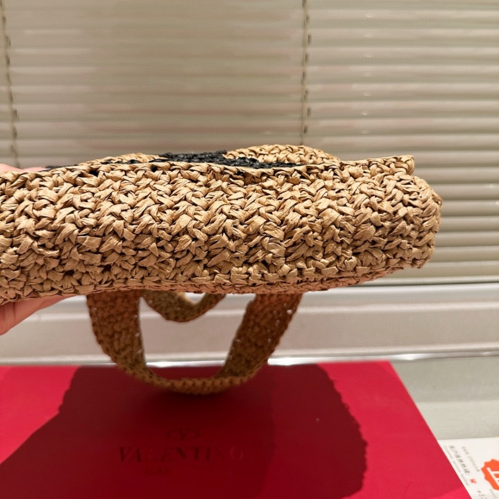 Valentino Garavani Viva Superstar Small Shopping Bag In Raffia Beige 25Cm / 9.84 inches