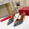 - Denim and leather upper with leather sole and aged gold-tone hardware.