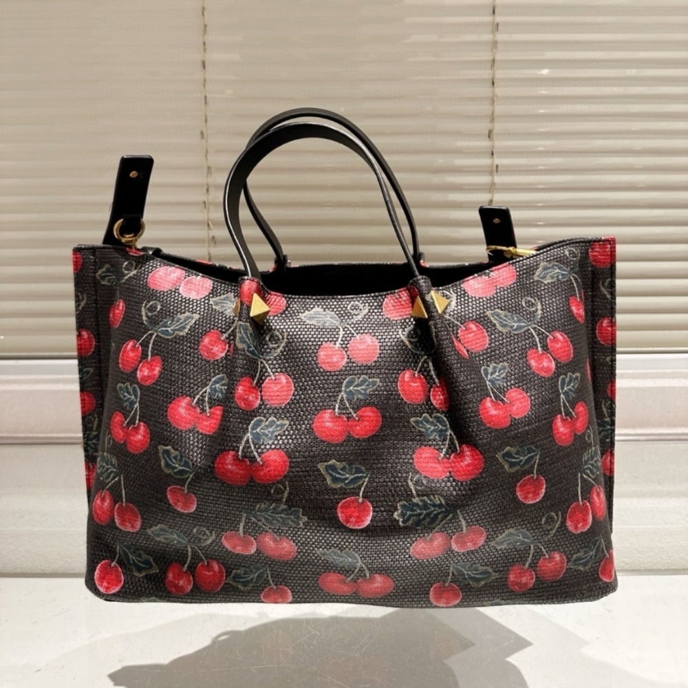 Valentino Garavani VLogo Signature Cherryfic Motif Bag Black 26Cm