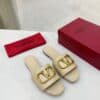 Valentino Garavani Vlogo Signature Slide Sandal Beige