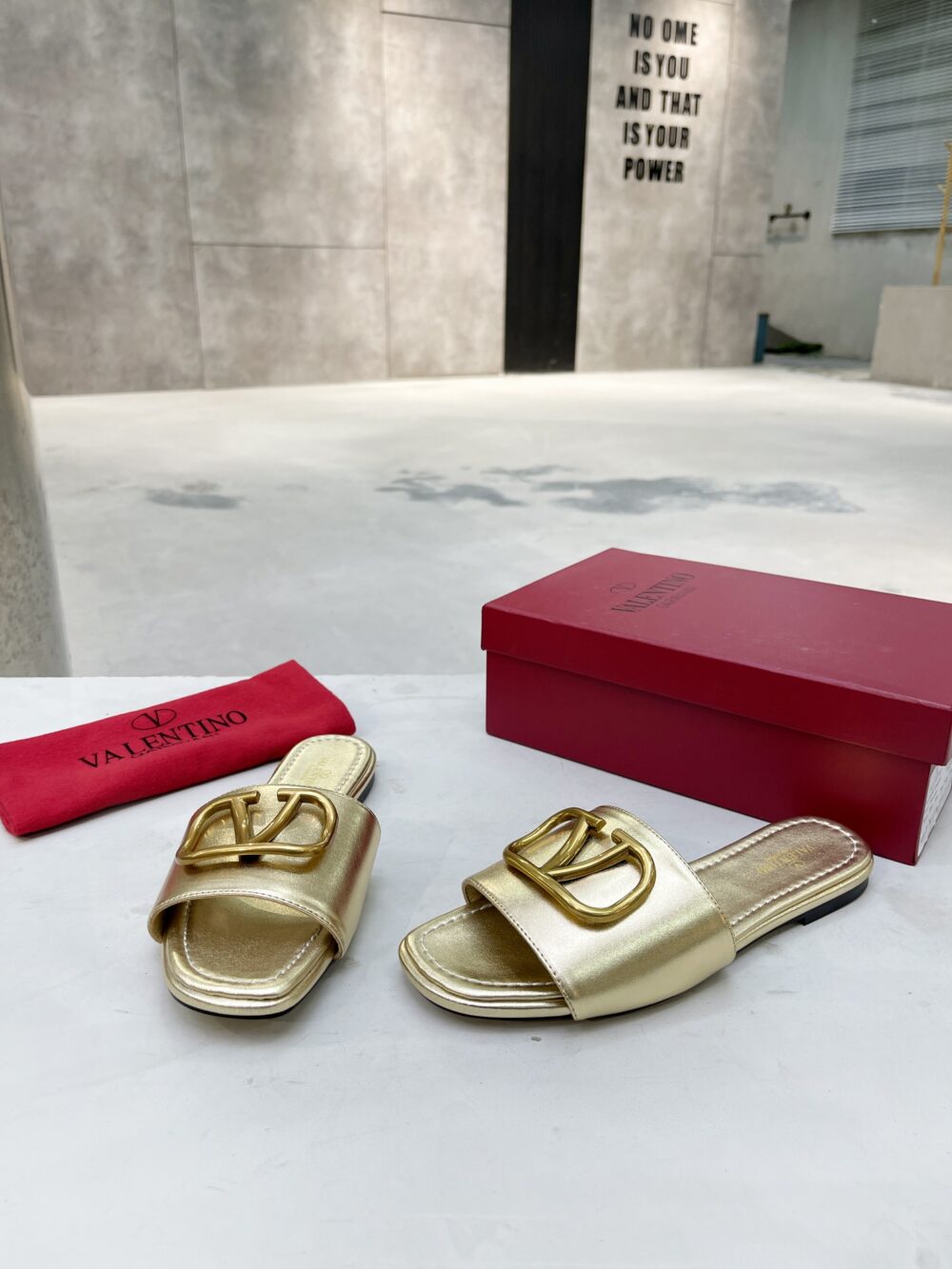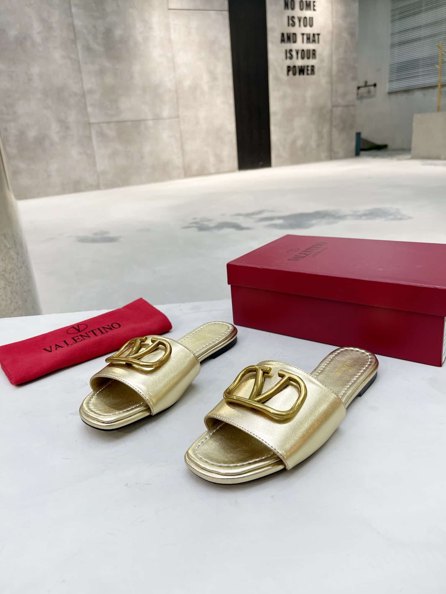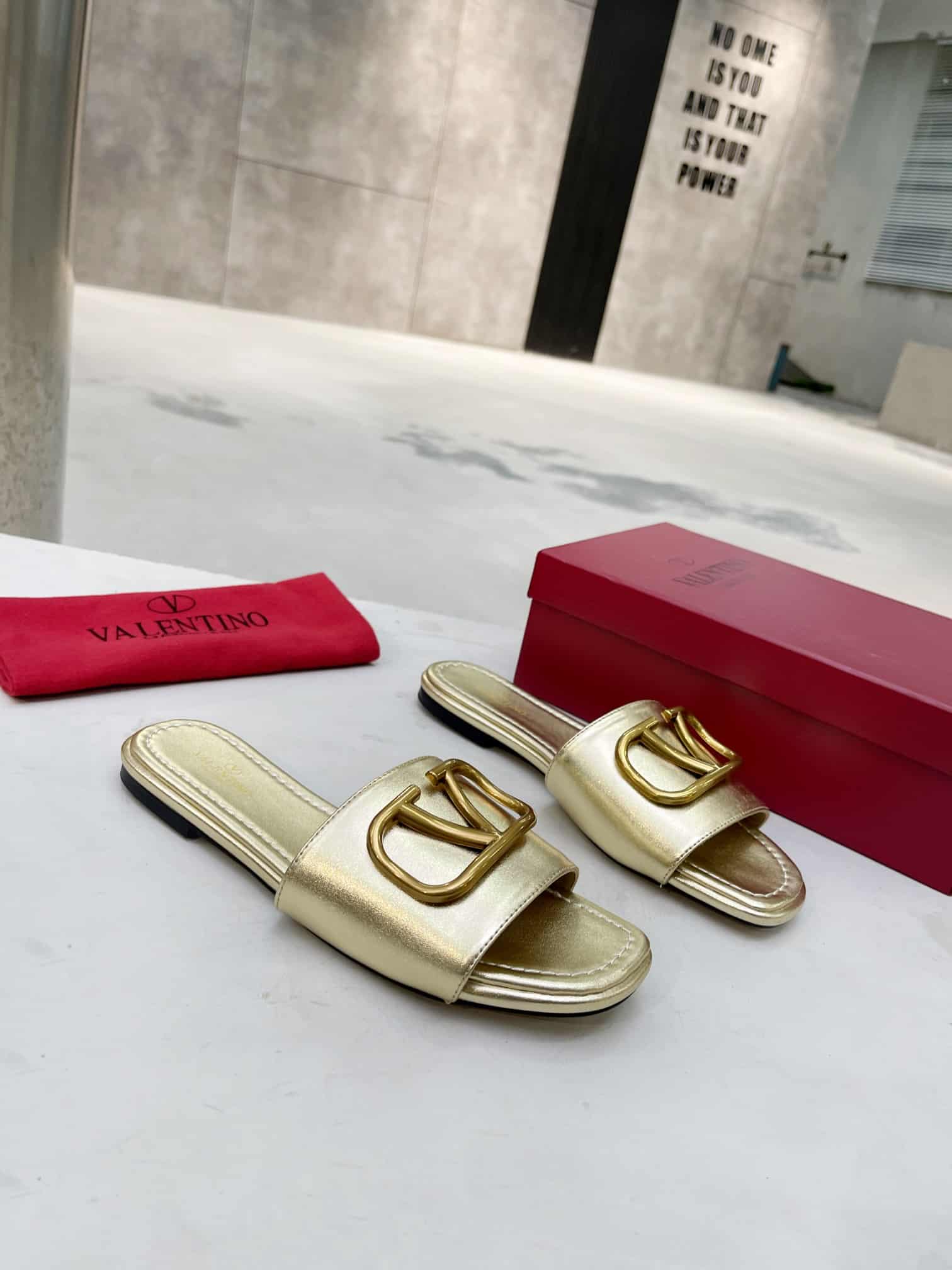 VALENTINO GARAVANI VLOGO SIGNATURE SLIDE SANDAL GOLD