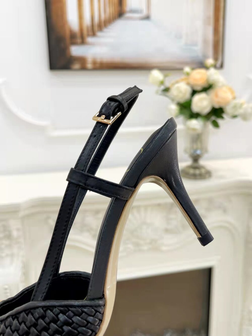 VALENTINO GARAVANI VLOGO WOVEN LEATHER SLINGBACK PUMPS BLACK