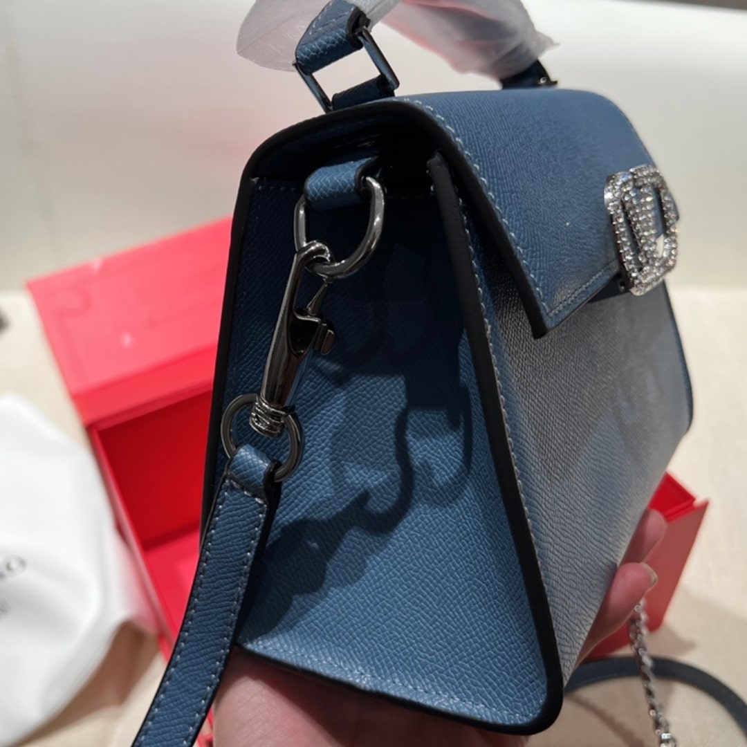 Valentino Garavani//Vsling Crystal Embellished Leather Handbag//Blue//18cm