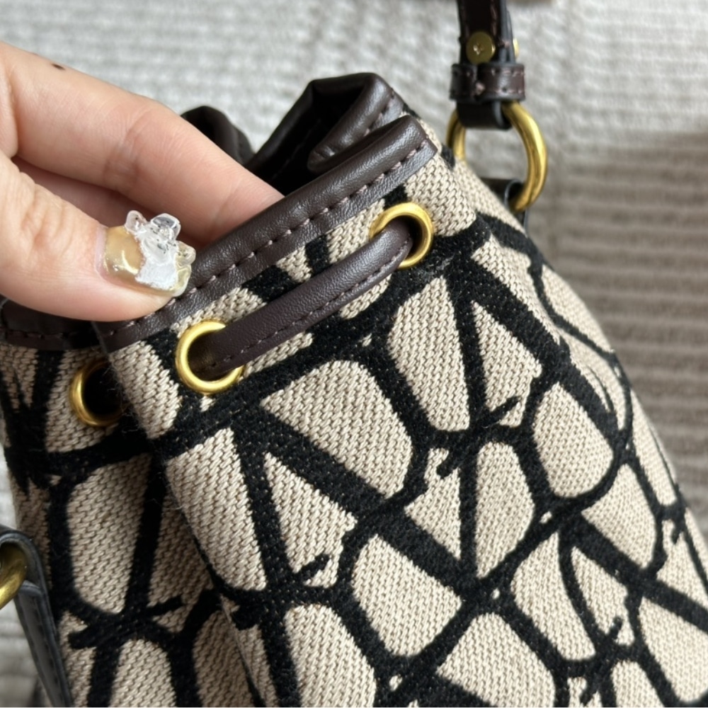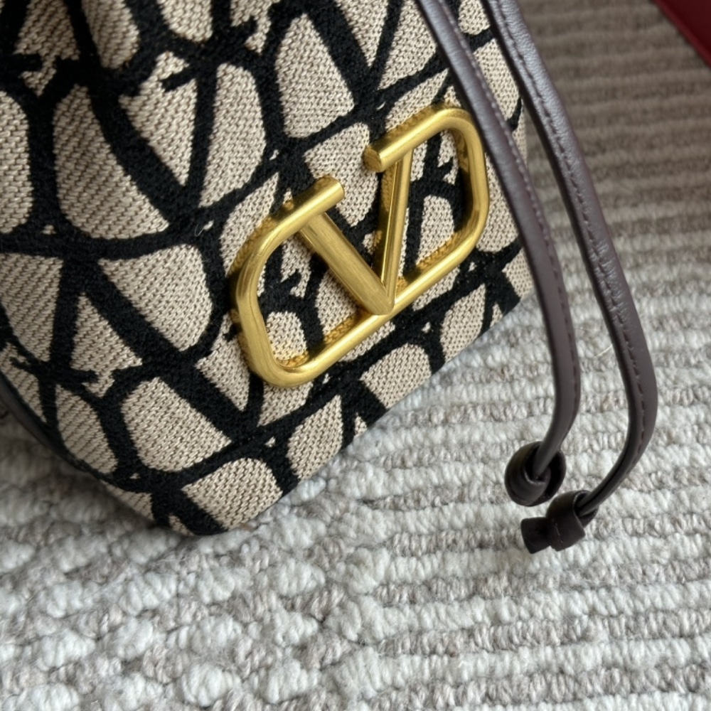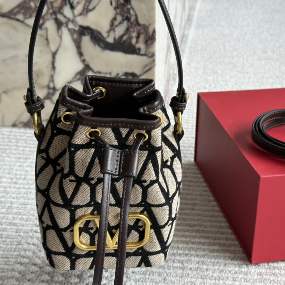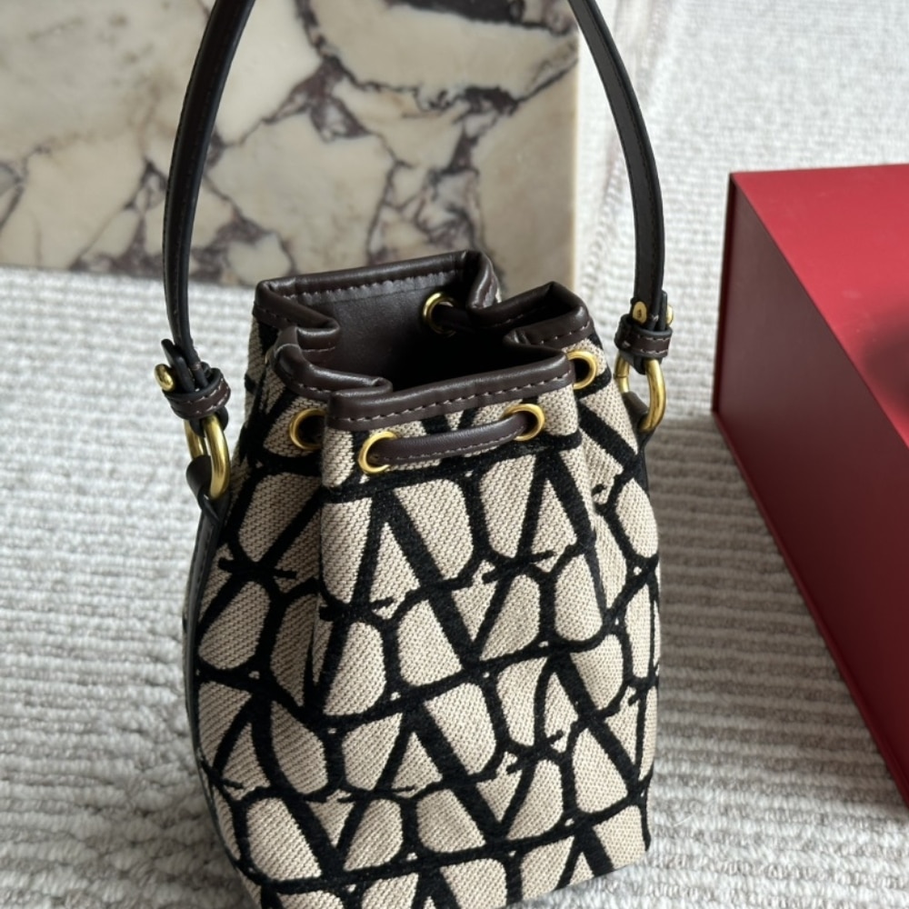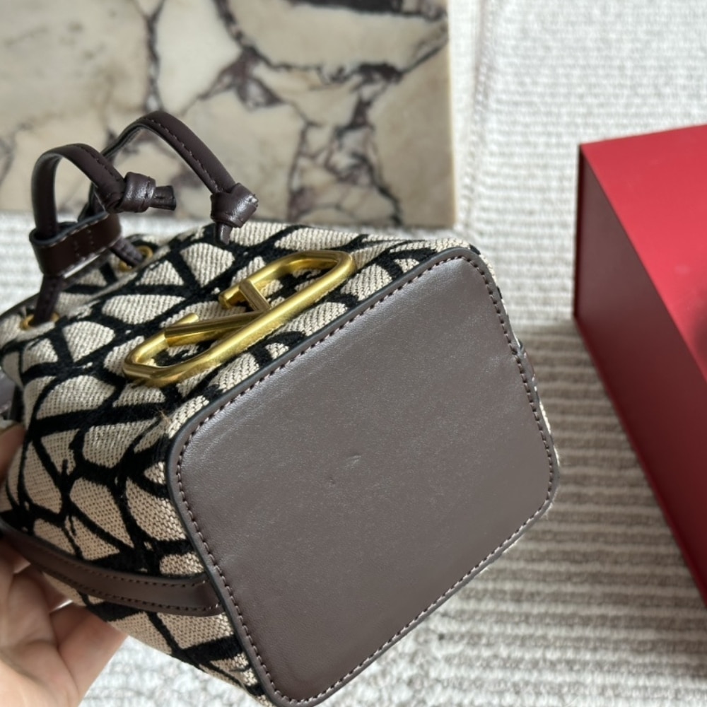 Valentino Mini Vlogo Signature Bucket Bag In Toile Iconographe Brown 5w2p0z44vri 6zn 22cm/8.5in