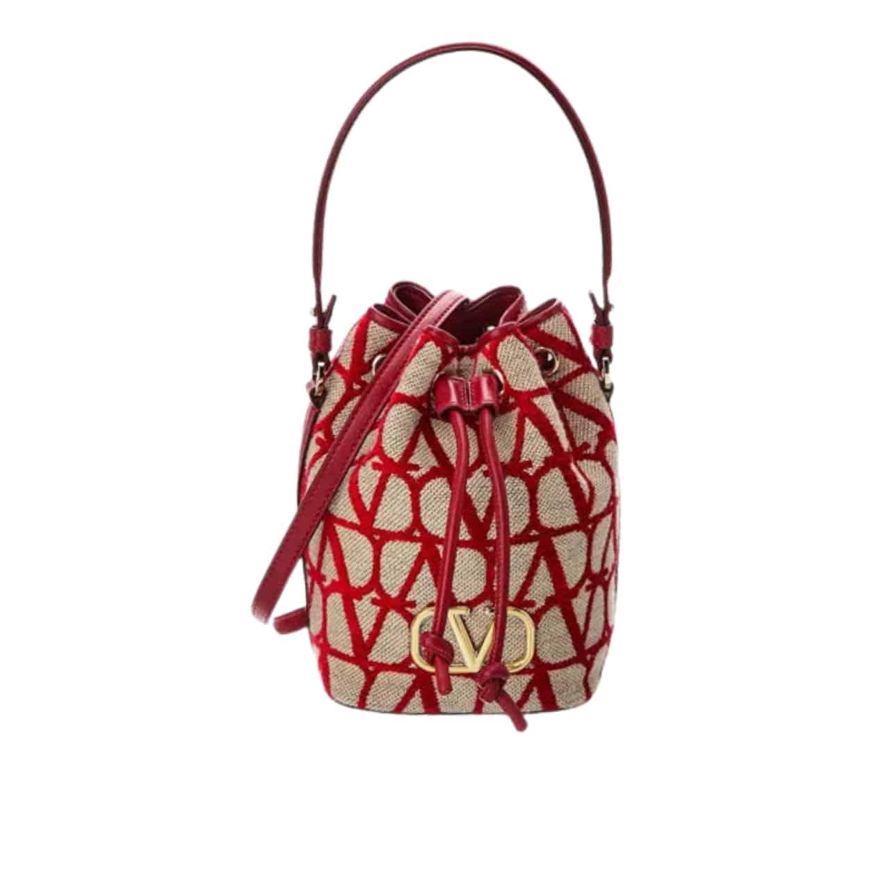 Valentino Mini Vlogo Signature Bucket Bag In Toile Iconographe Red 22cm/8.5in
