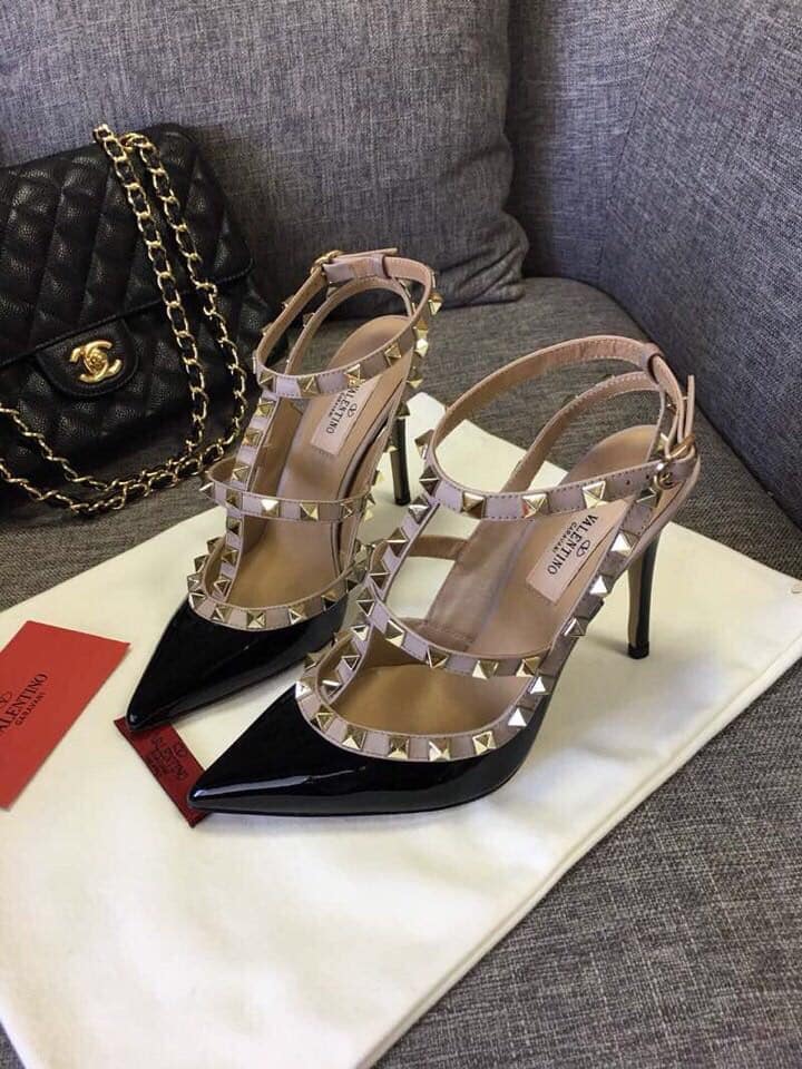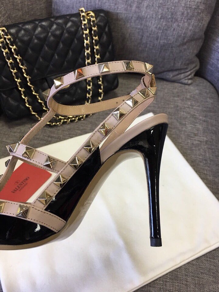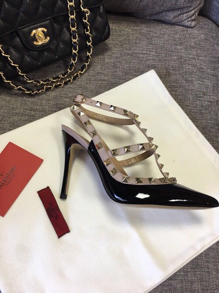 VALENTINO PATENT ROCKSTUD CAGED PUMP BLACK 5W2S0393VNW N91