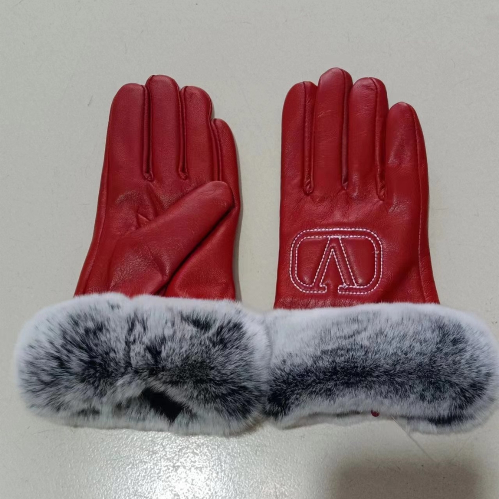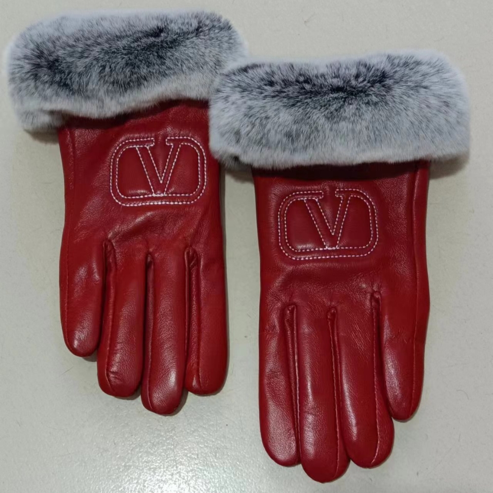 Valentino Rabbit Fur Red Leather Gloves / Cashmere lining / Elegant for winter / Cozy Gloves