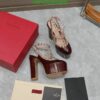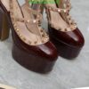 VALENTINO ROCKSTUD PLATFORM PUMP IN PATENT LEATHER BROWN