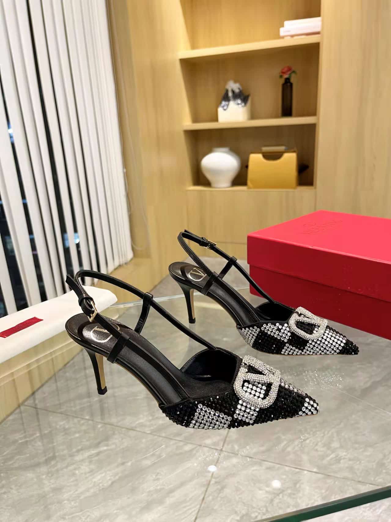 VALENTINO VLOGO SIGNATURE BACK STRAP CRYSTAL HIGH HEELS BLACK WS0R01EWKZRN