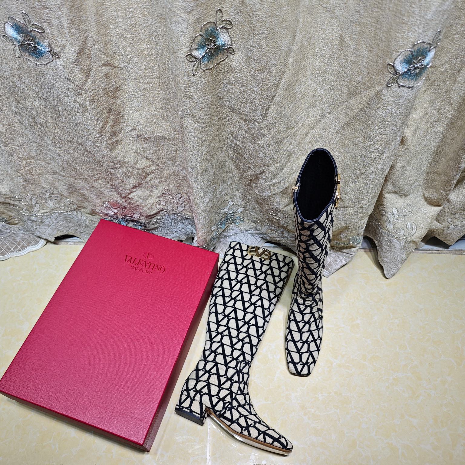 VALENTINO VLOGO TYPE BOOT IN TOILE ICONOGRAPHE BEIGE BLACK 2W2S0FT9EBH6ZN